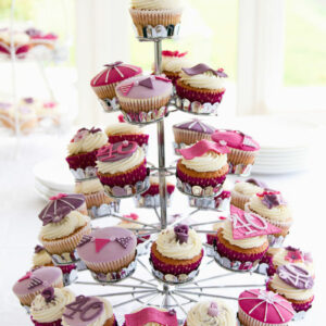 - 5 Etagen / 72 Stücke: Torte: 15 cm für 10 Personen + 62 Cupcakes