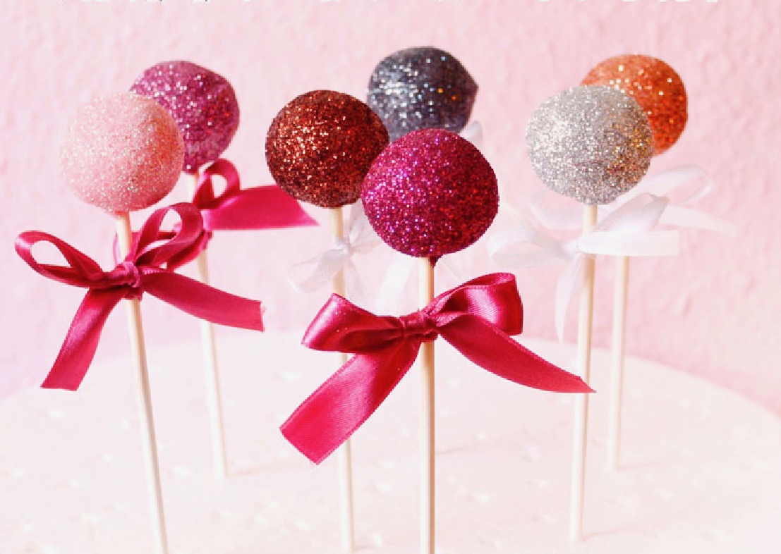 Verzierung: Essbares Glitzer in verschiedenen Farben / Schleife.