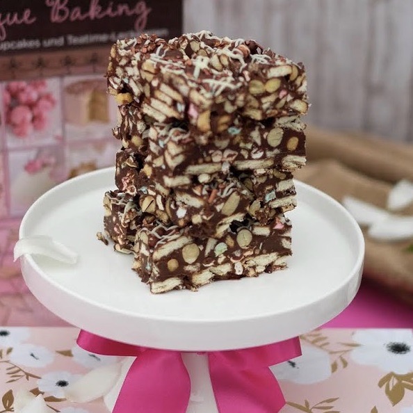 1 Stück: Himmlischer, handgefertigter ,,Kalter Hund“ mit Pistazien, pinken Marshmallows und der feinsten Schokolade von Callebaut. Einfach nur köstliche!!!